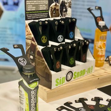 Sip 'N' Snap-it grips the top of your beverage bottle and then easily and securely snaps onto your:
